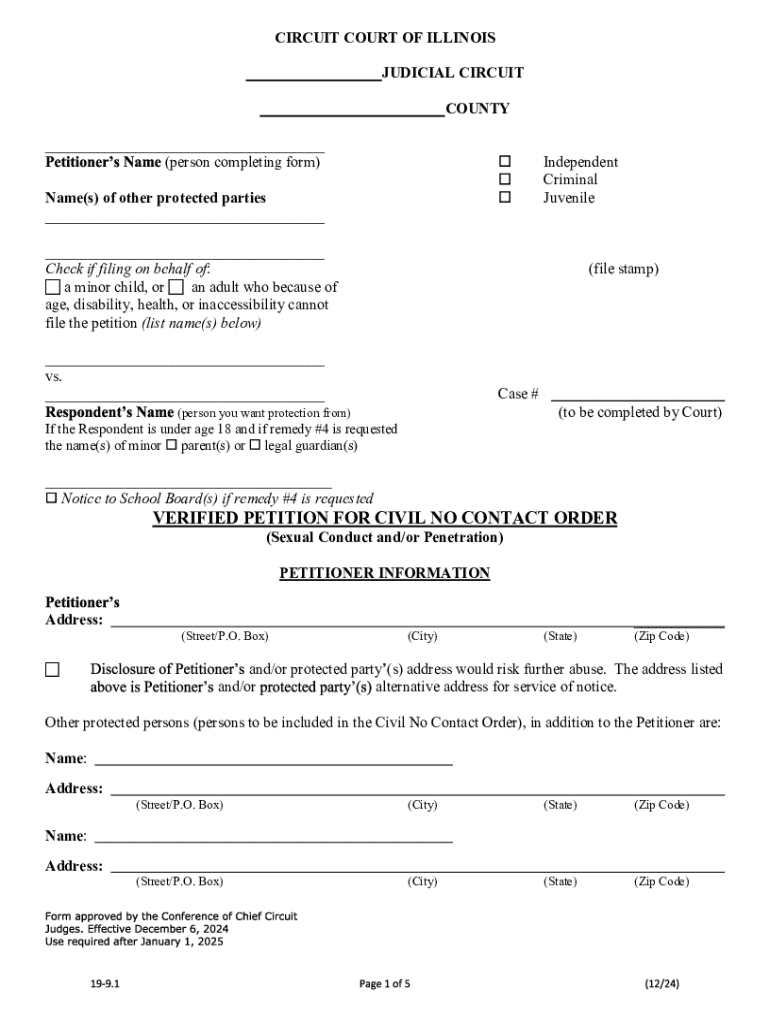 Get the free Verified Petition for Civil No Contact Order