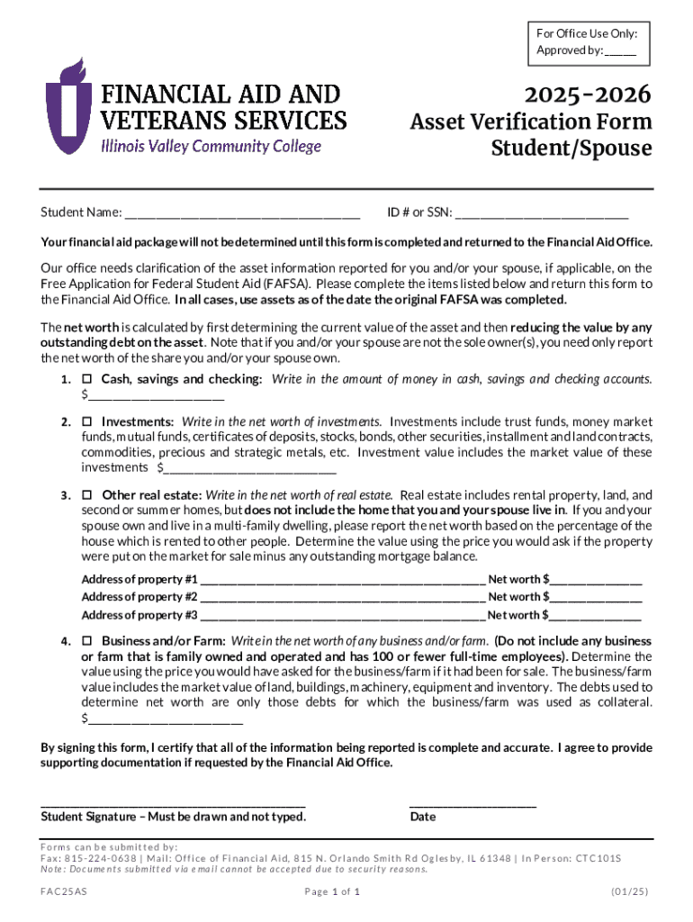 Get the free Asset Verification Form