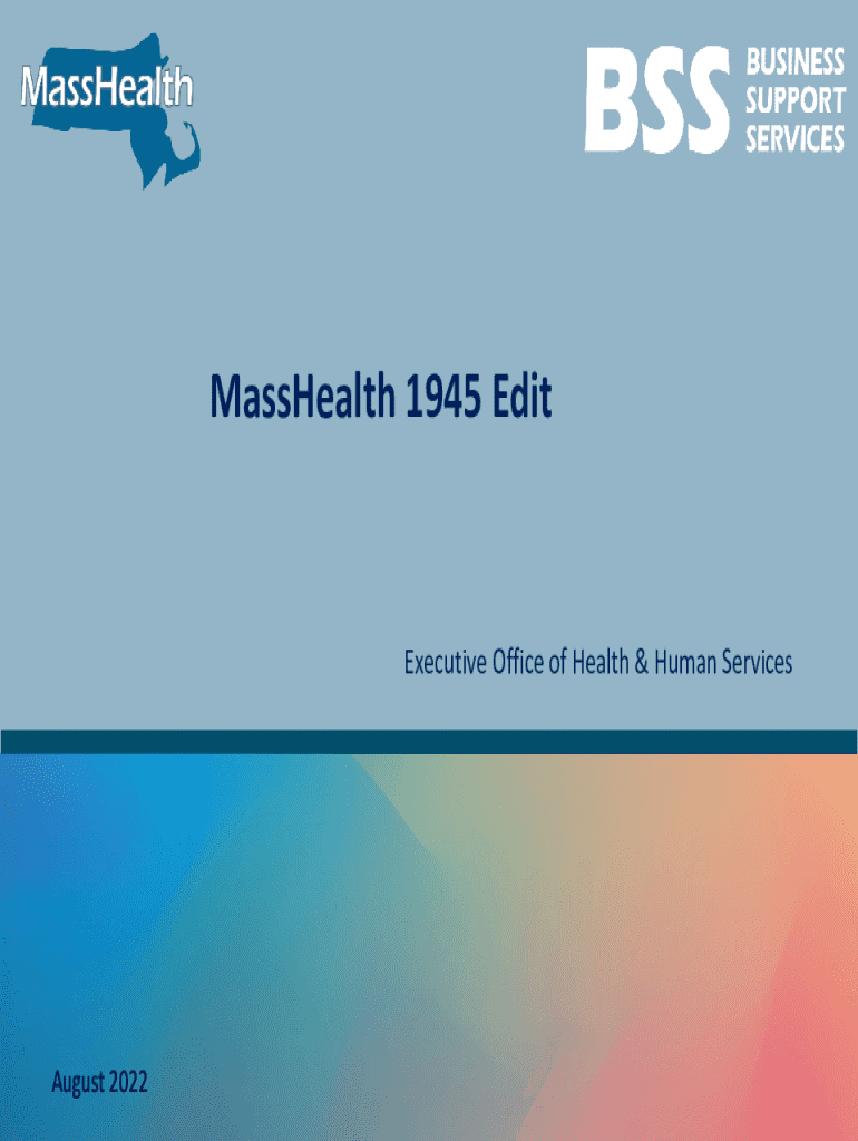 Healthcare providers who submit claims to the MassHealth program for reimbursement of services rendered to eligible members are required to file the MassHealth 1945 edit.