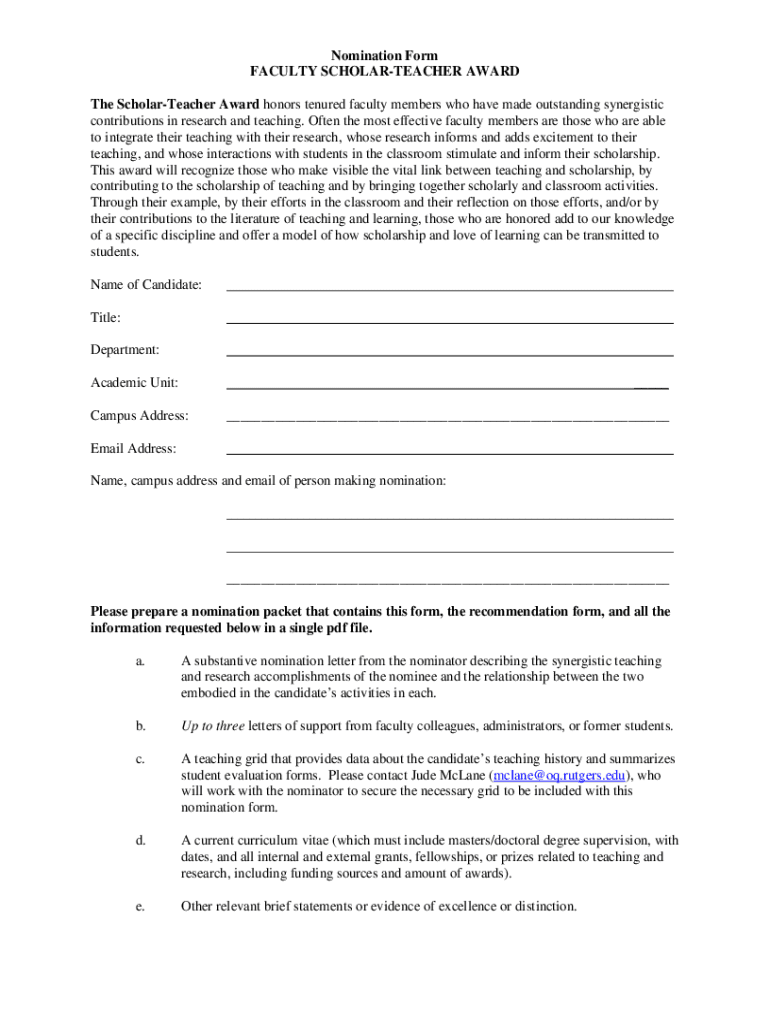 The importance of this form goes beyond the surface level; it plays a key role in identifying outstanding faculty members who have made significant impacts in their fields and communities. Moreover, it encourages peer recognition, supports institutional goals, and emphasizes the values of excellence and service.