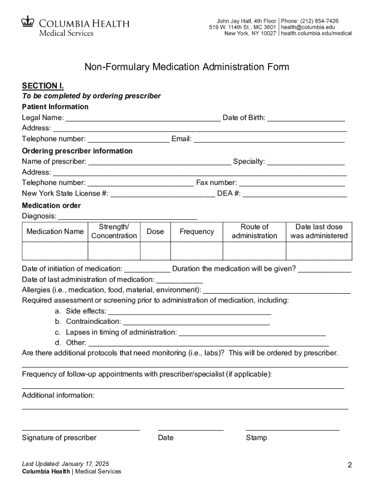 Get the free Non-formulary Medication Administration Form