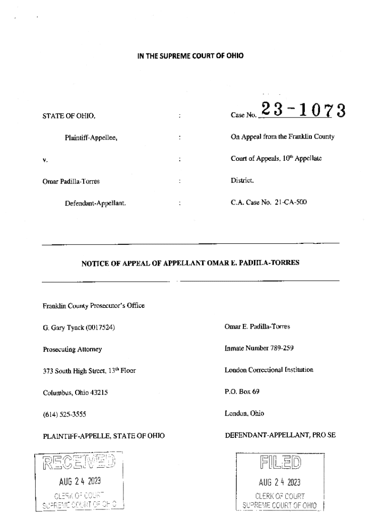Get the free Notice of Appeal of Appellant Omar E. Padilla-torres