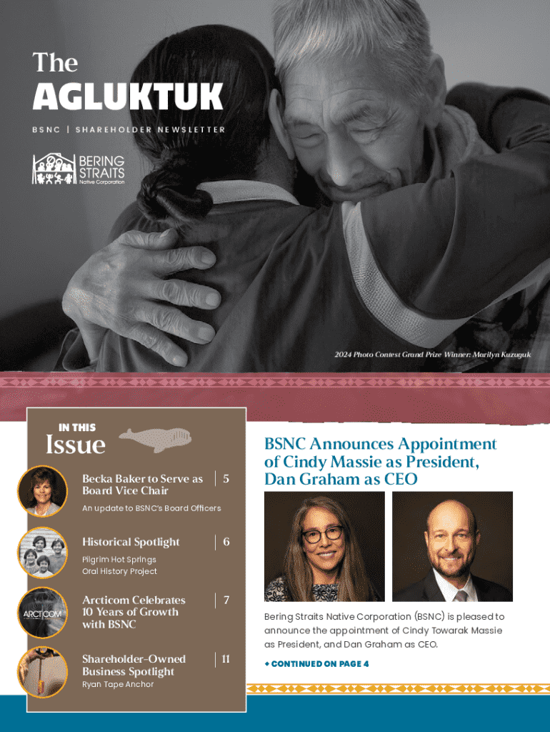 For shareholders, the Agluktuk newsletter provides critical insights and updates on organizational decisions, community events, and shareholders' rights. It connects individuals directly to the pulse of their investments, ensuring they are not only participants but informed stakeholders. This form's significance extends beyond mere updates; it embodies the collective voice of the Agluktuk community.