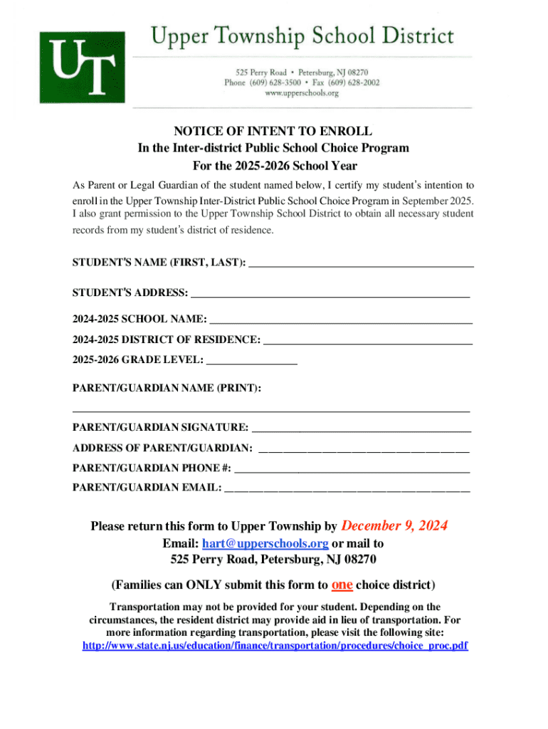 Get the free Notice of Intent to Enroll