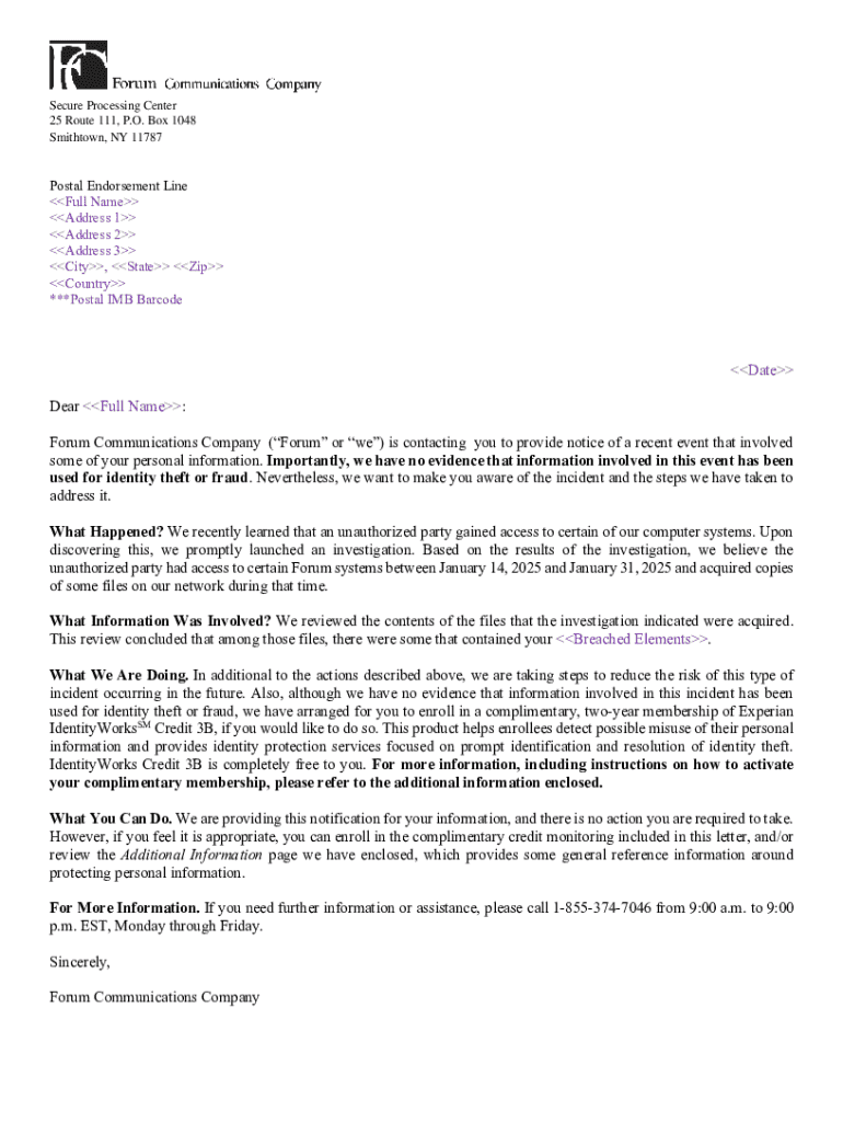 Get the free Notice of Data Breach