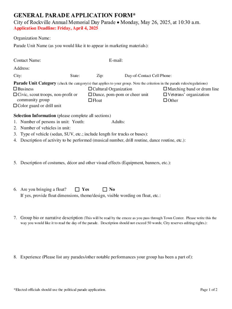 2025 Memorial Day Parade is not the form you're looking for?Search for another form here.