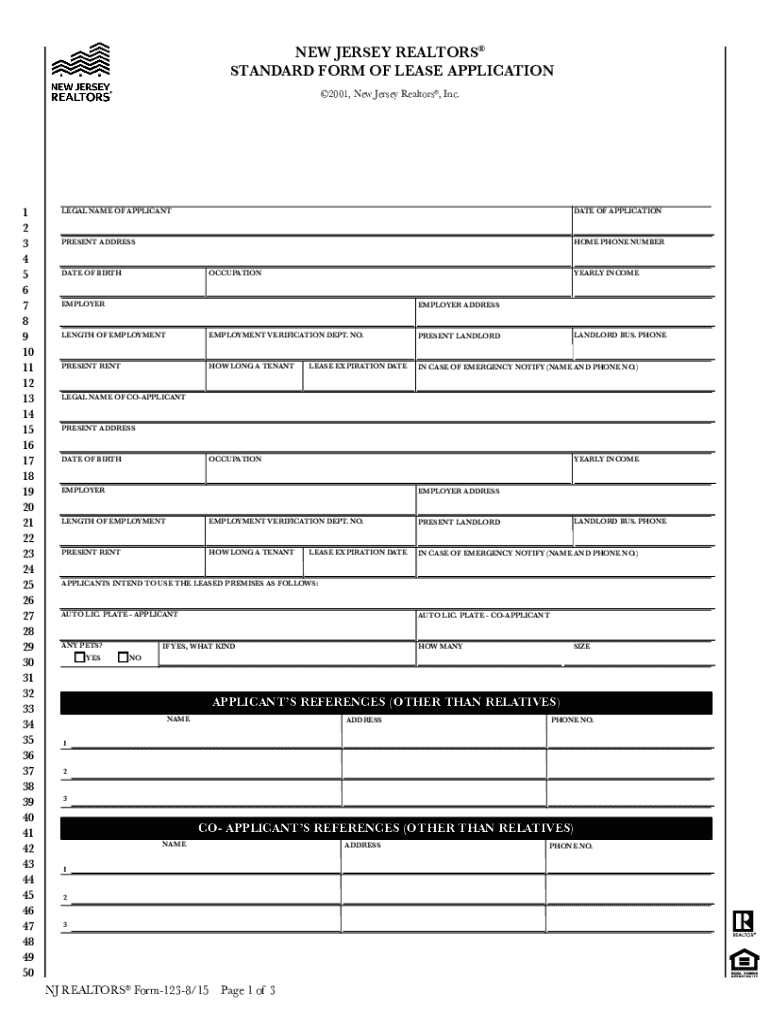 Get the free New Jersey Realtors® Standard Form of Lease Application