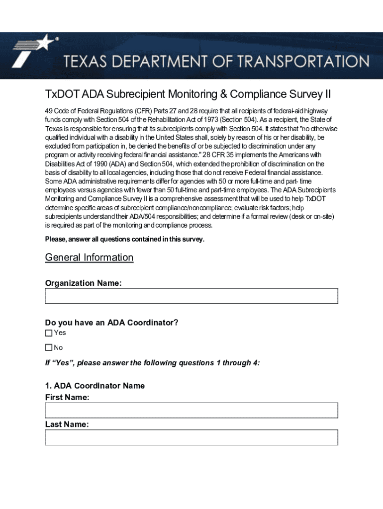 TX ADA Subrecipient Monitoring & Compliance Survey II 2023-2026 free printable template