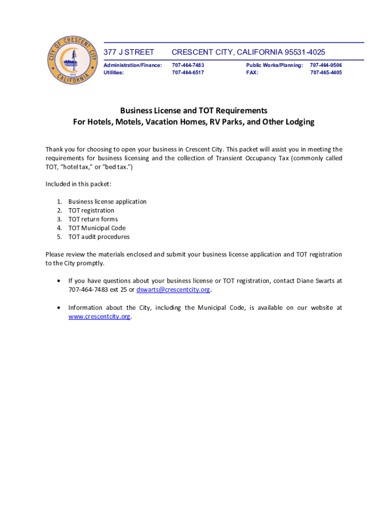 Get the free Business License Application for Transient Occupancy Tax