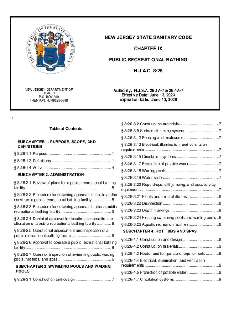 Get the free New Jersey State Sanitary Code Public Recreational Bathing