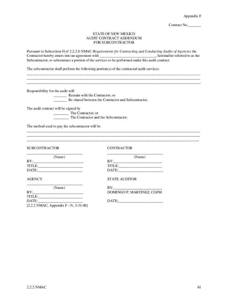 Get the free Audit Contract Addendum for Subcontractor