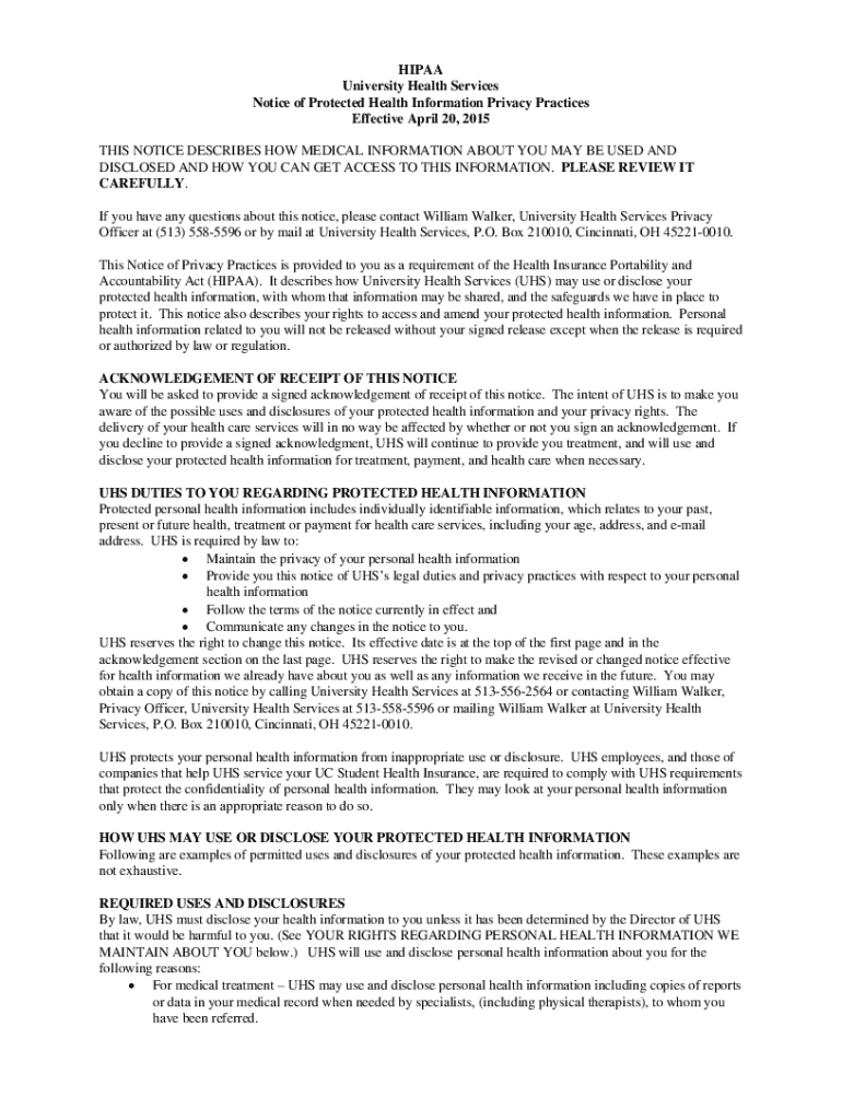 Get the free Notice of Protected Health Information Privacy Practices