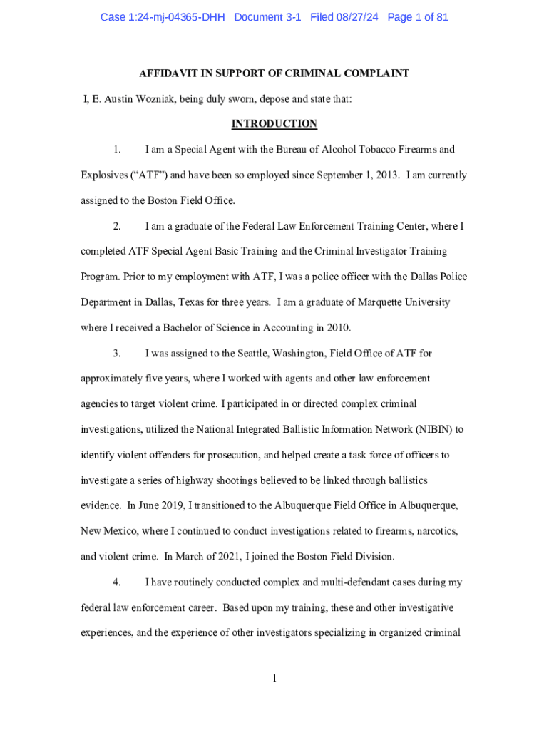 Get the free Affidavit in Support of Criminal Complaint