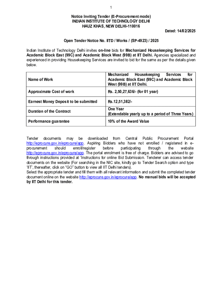 Get the free Notice Inviting Tender (e‐procurement Mode)