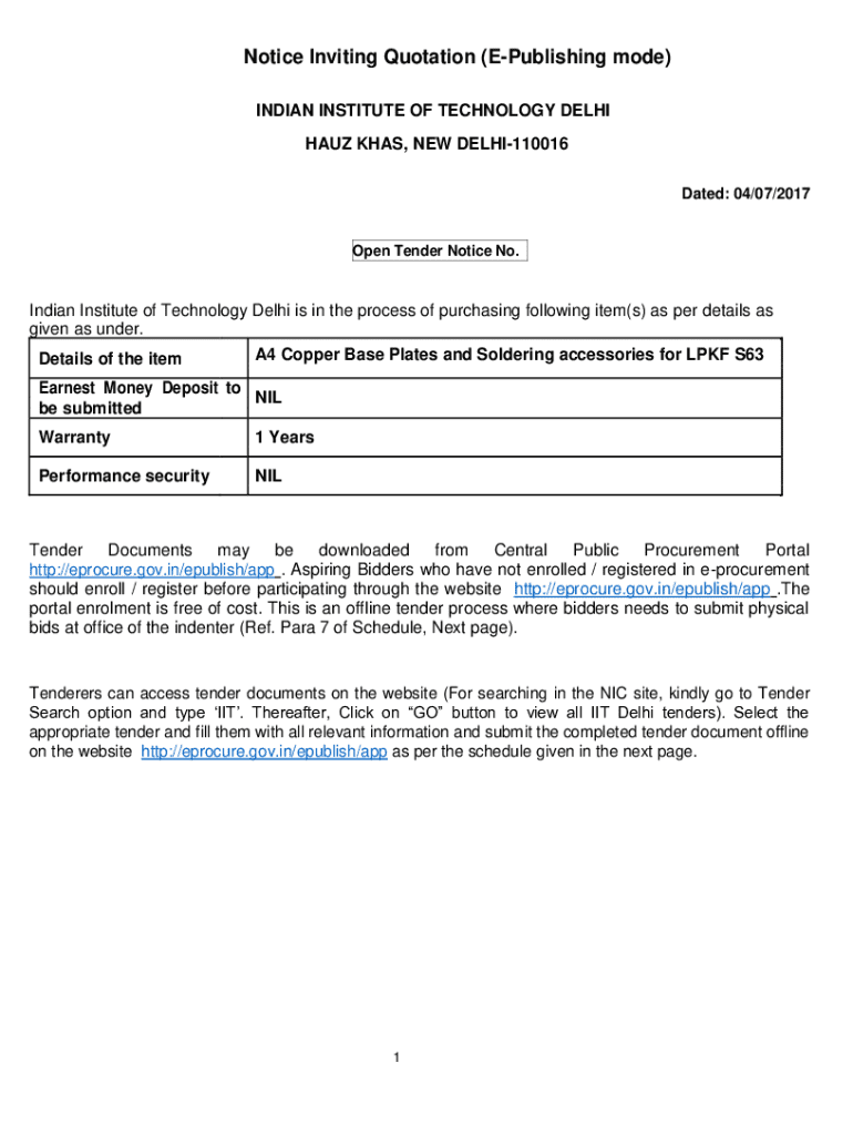 Get the free Notice Inviting Quotation (e-publishing Mode)