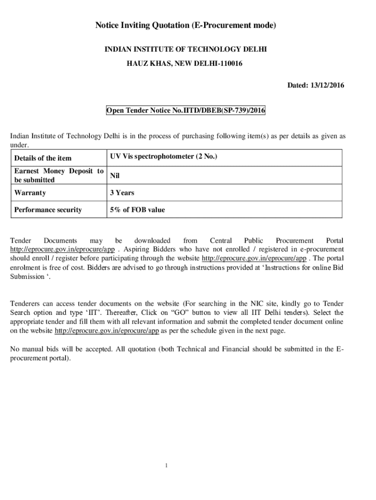 Get the free Notice Inviting Quotation (e-procurement Mode)