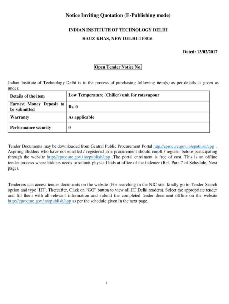 Get the free Notice Inviting Quotation (e-publishing Mode)