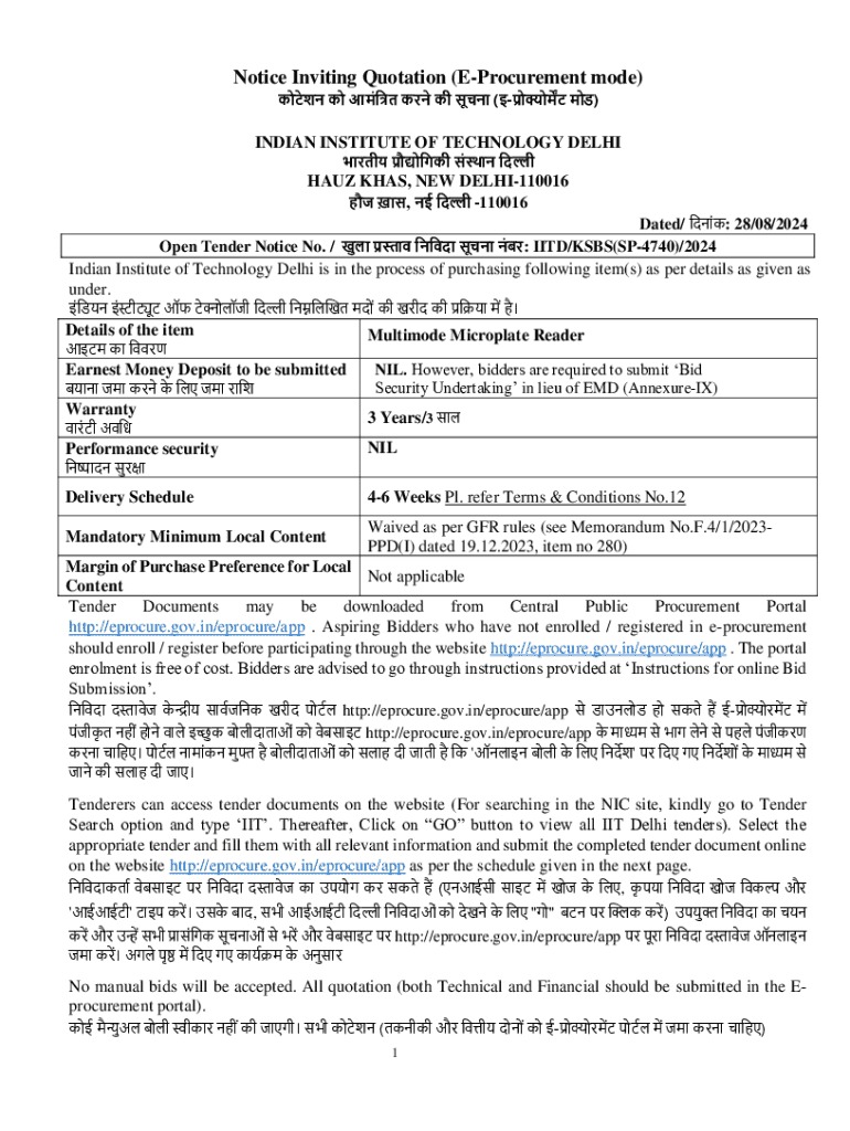 Get the free Notice Inviting Quotation (e-procurement Mode)