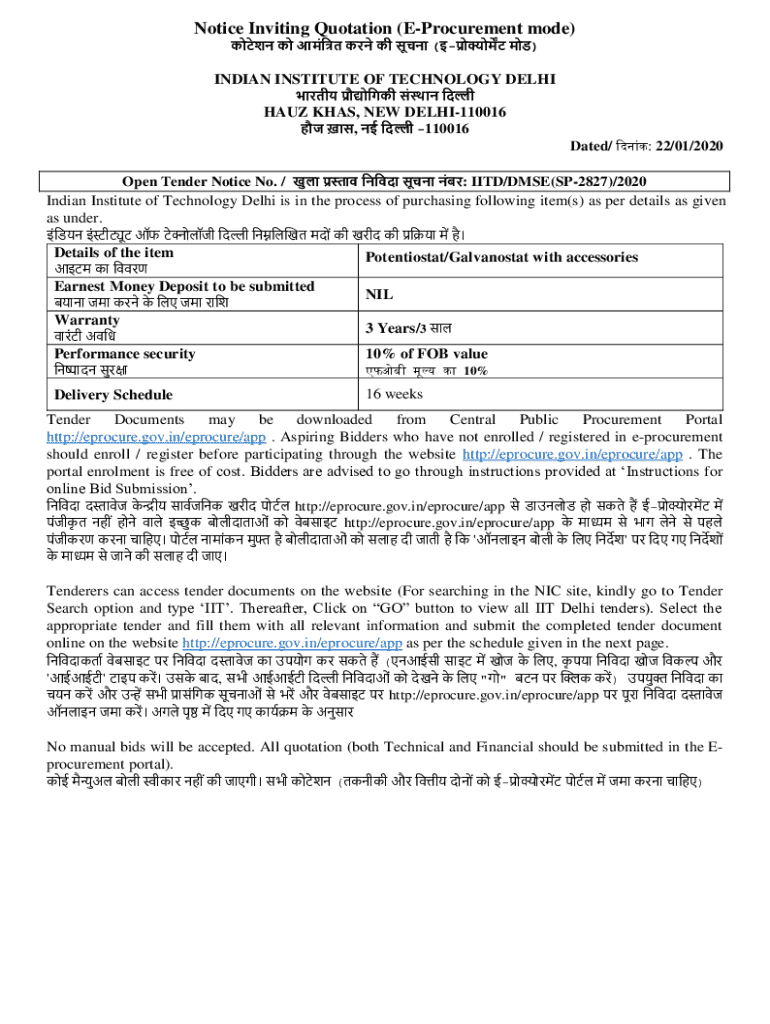 Get the free Notice Inviting Quotation (e-procurement Mode)