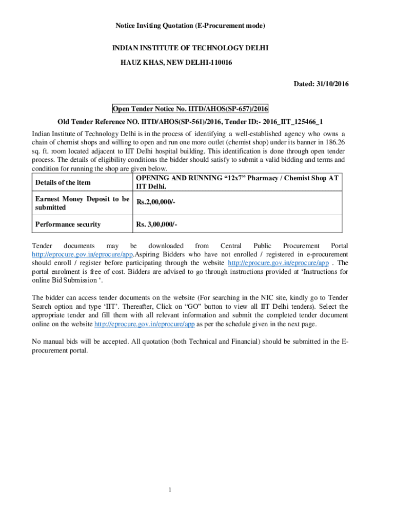 Get the free Notice Inviting Quotation (e-procurement Mode)