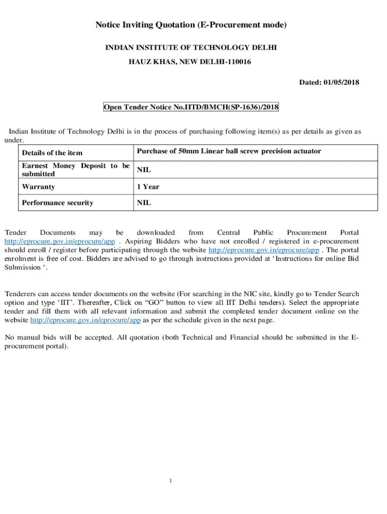 Get the free Notice Inviting Quotation (e-procurement Mode)