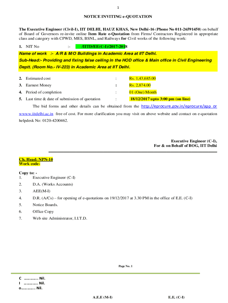 Get the free Notice Inviting E-quotation