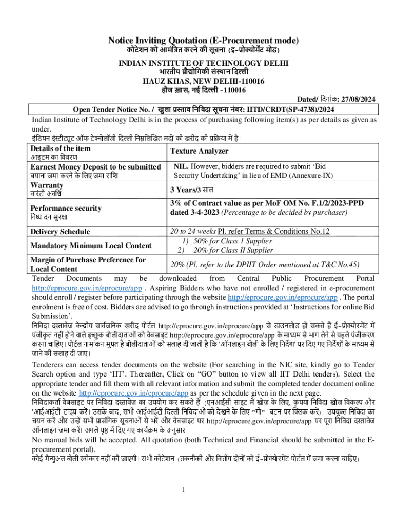 Comprehensive Guide to Notice Inviting Quotation E-Procurement Form