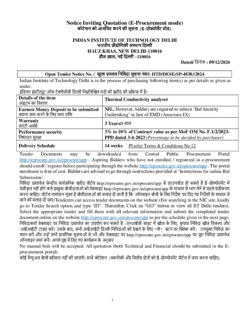 Get the free Notice Inviting Quotation (e-procurement Mode)