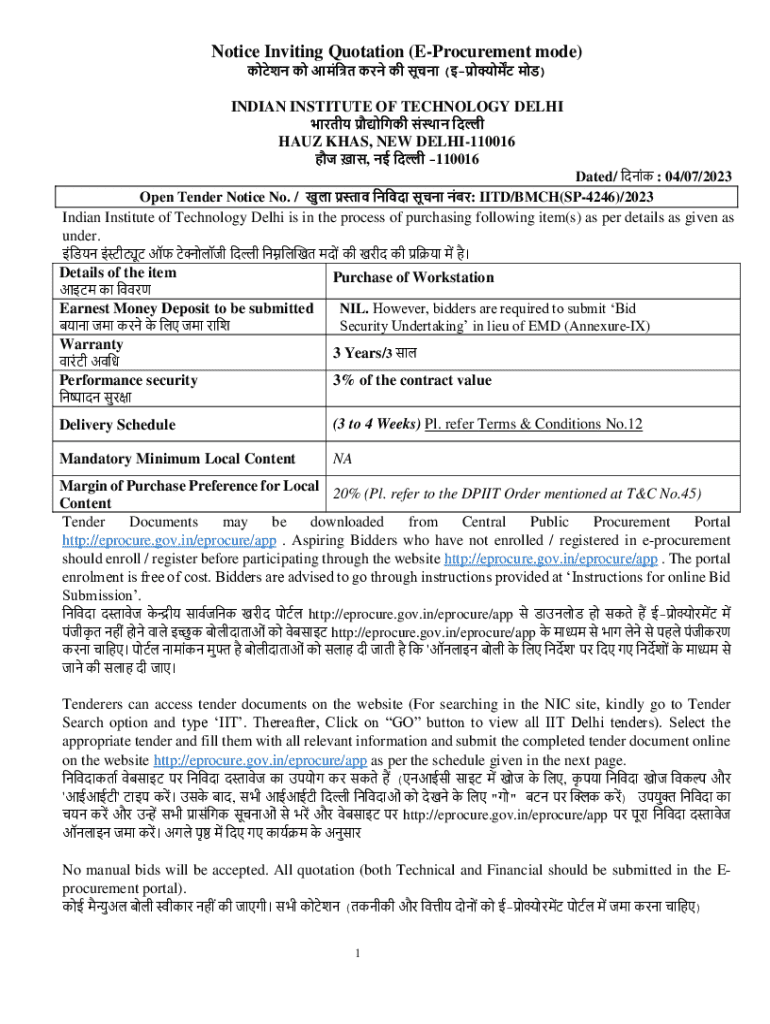 Notice Inviting Quotation e-Procurement Form: A Comprehensive Guide
