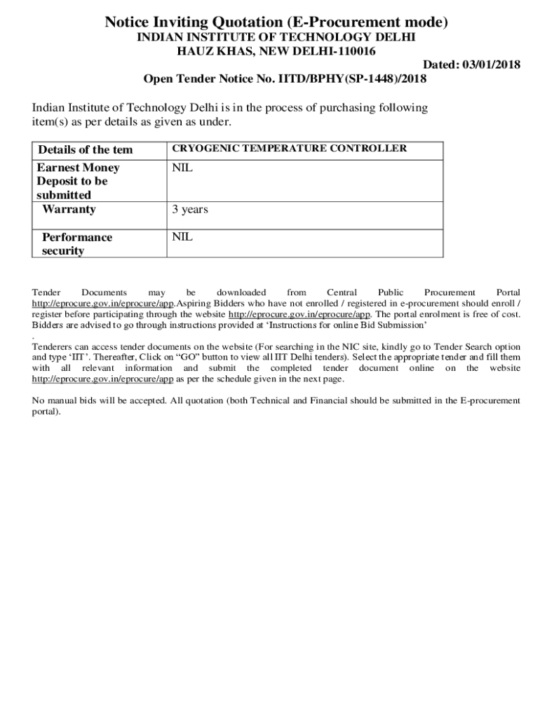 Get the free Notice Inviting Quotation (e-procurement Mode)