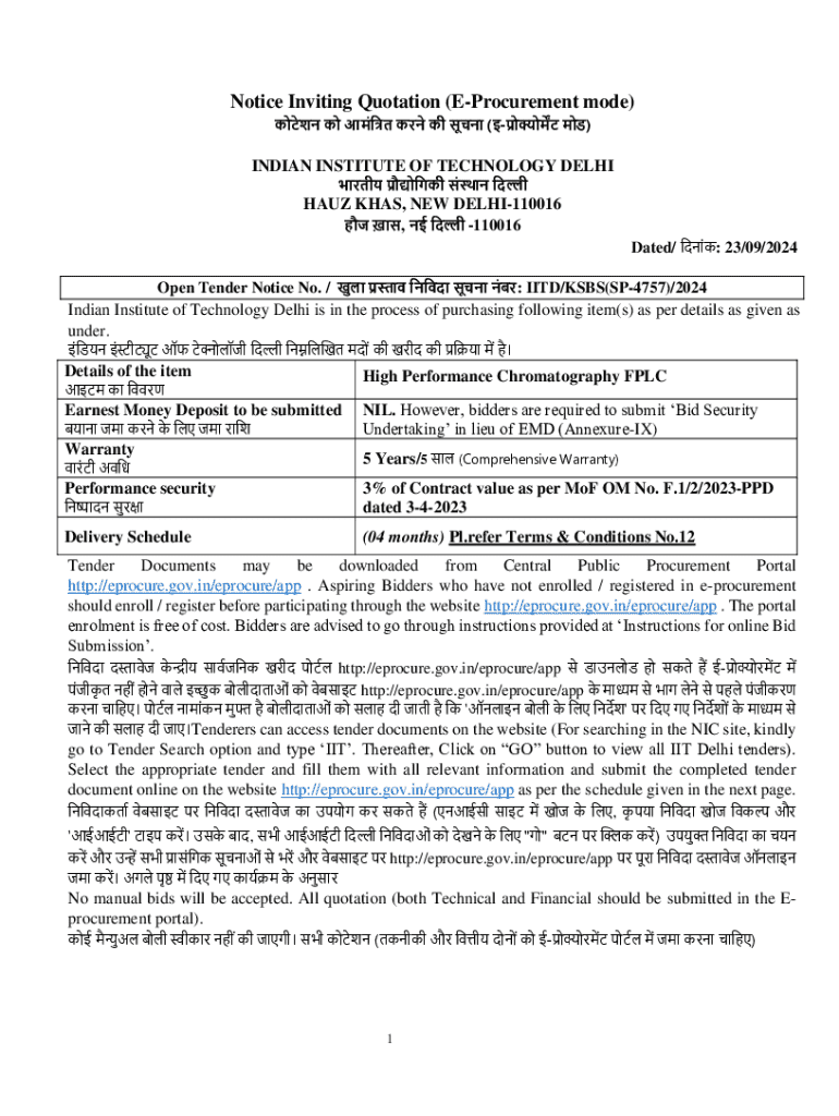 Get the free Notice Inviting Quotation (e-procurement Mode)