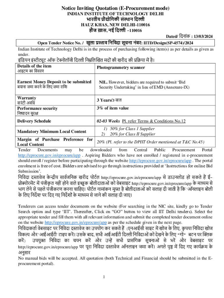 Get the free Notice Inviting Quotation (e-procurement Mode)