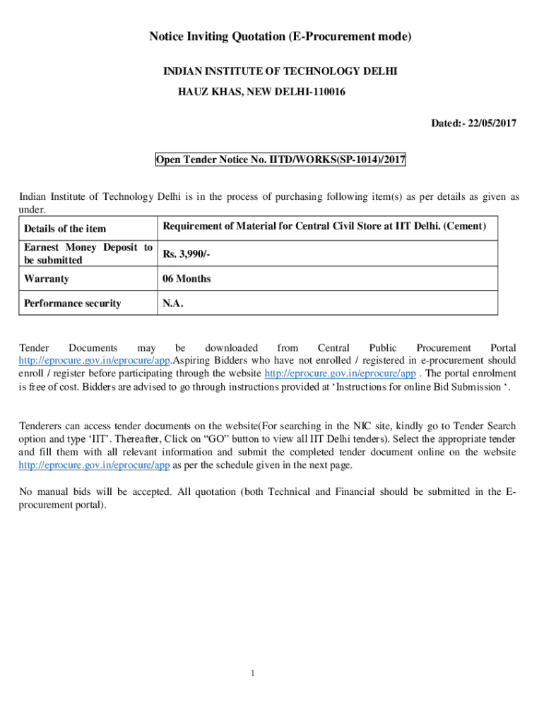 Get the free Notice Inviting Quotation (e-procurement Mode)