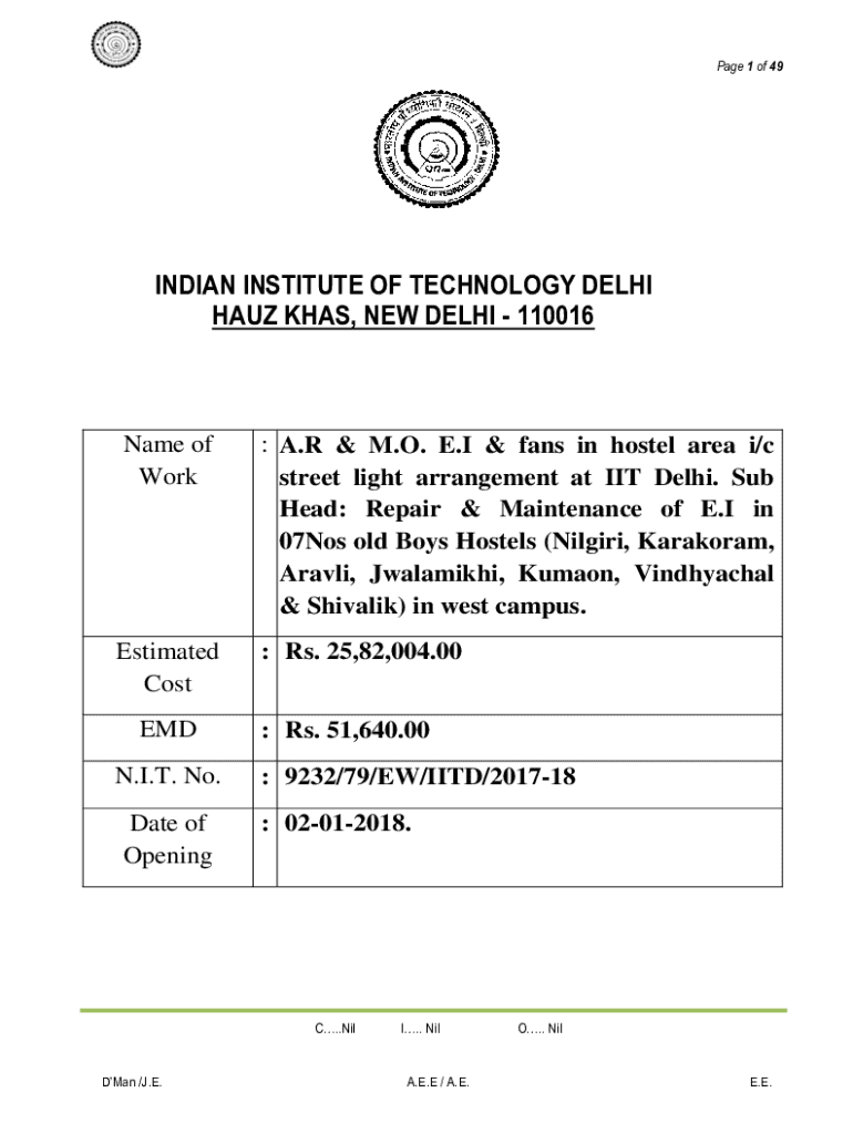 Get the free Notice Inviting E-tender for Electrical Maintenance Work