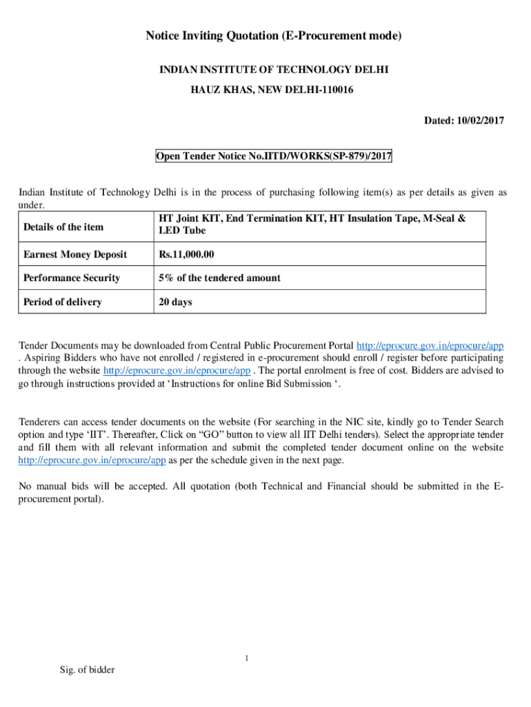 Get the free Notice Inviting Quotation (e-procurement Mode)