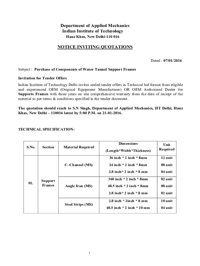 Get the free Notice Inviting Quotations for Purchase of Components of Water Tunnel Support Frames