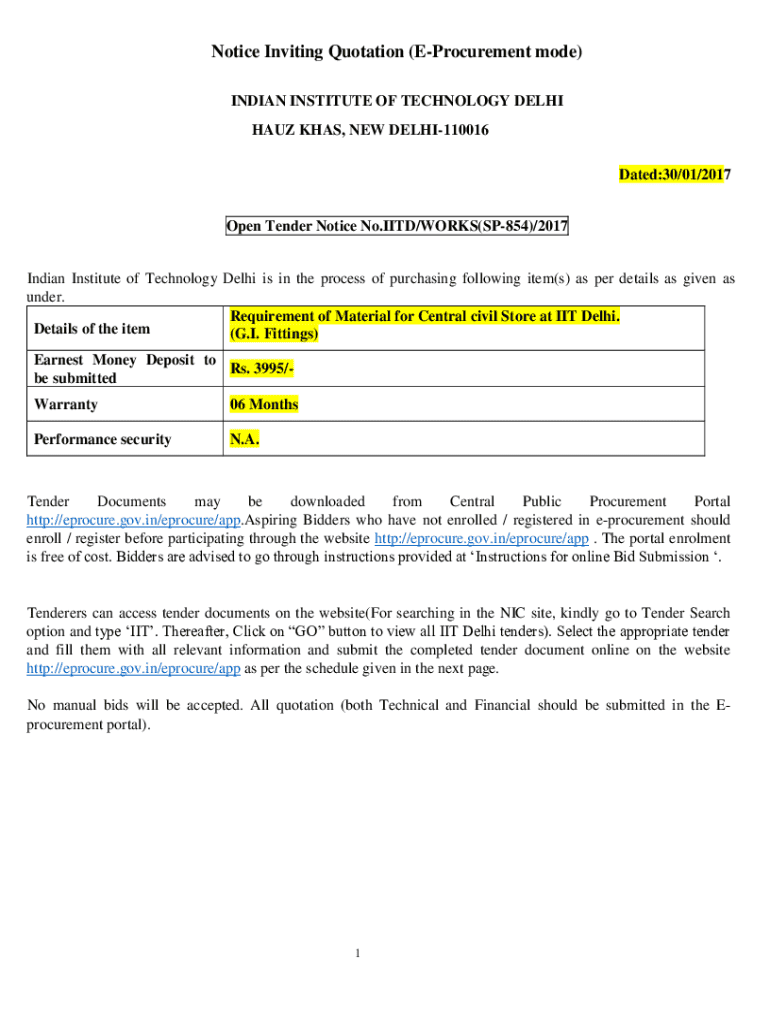 Get the free Notice Inviting Quotation (e-procurement Mode)