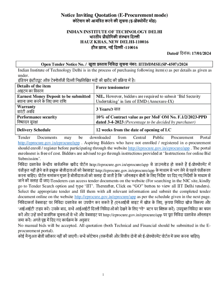 Get the free Notice Inviting Quotation (e-procurement Mode)