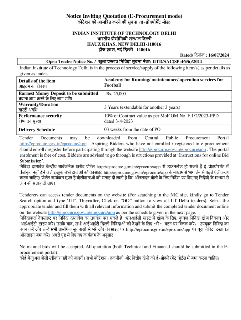 Get the free Notice Inviting Quotation (e-procurement Mode)