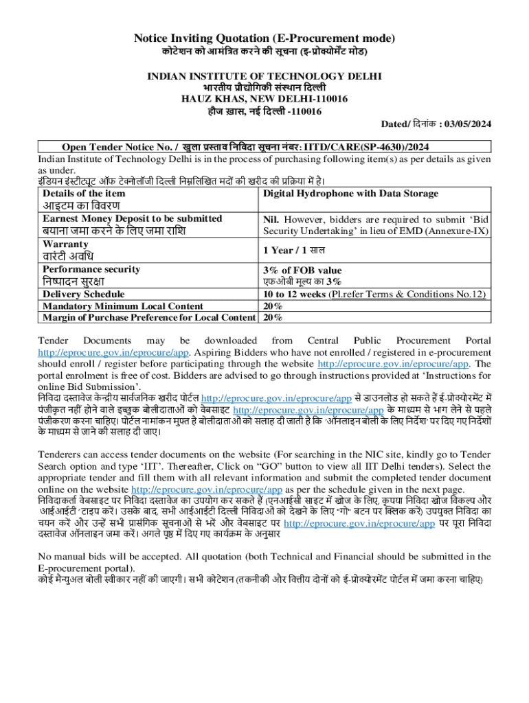 Understanding the Notice Inviting Quotation E-Procurement Form