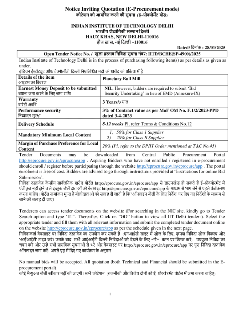 Get the free Notice Inviting Quotation (e-procurement Mode)