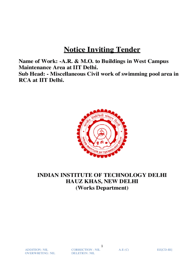 Get the free Notice Inviting Tender for Civil Work at Iit Delhi