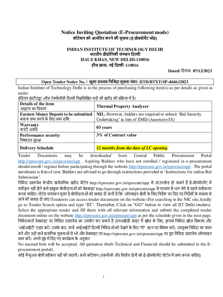 A Comprehensive Guide to Notice Inviting Quotation E-Procurement Forms