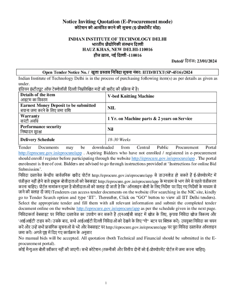 Get the free Notice Inviting Quotation (e-procurement Mode)
