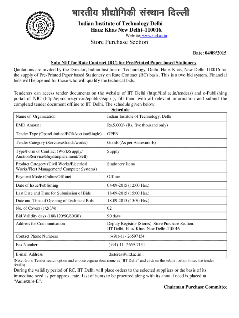 A Notice Inviting Tender (NIT) is a formal invitation issued by organizations, typically in the public sector, to solicit bids from qualified contractors and suppliers for projects or supply of goods and services. The NIT serves as a key document in the procurement process, outlining specific requirements for bidders and often detailing timelines, terms, and conditions for the submission of proposals.