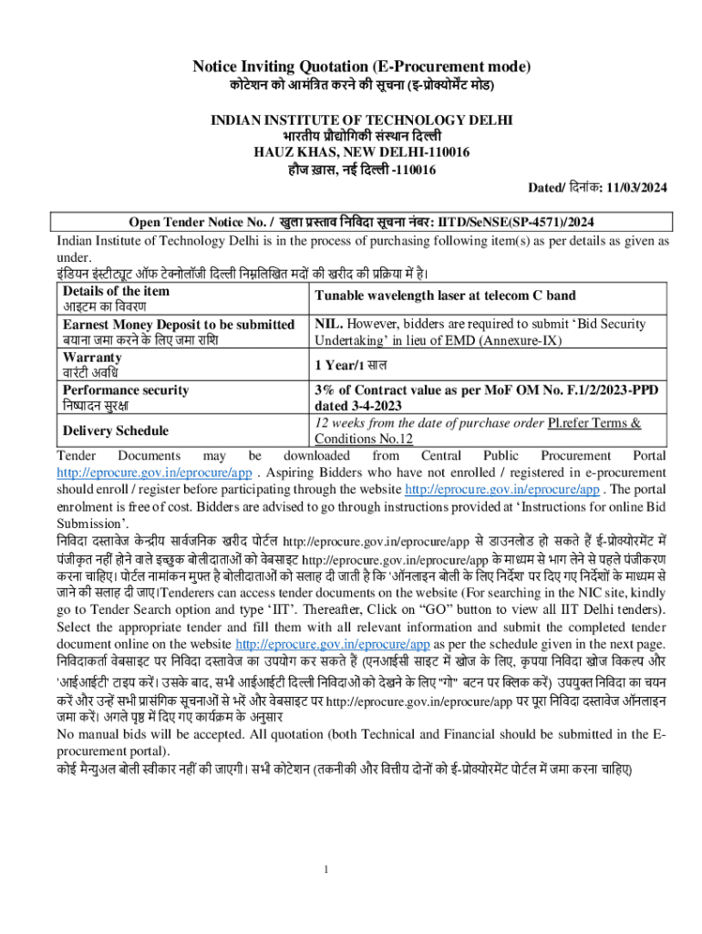 Notice Inviting Quotation e-Procurement Form: A Comprehensive Guide