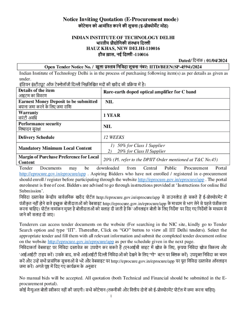 Get the free Notice Inviting Quotation (e-procurement Mode)