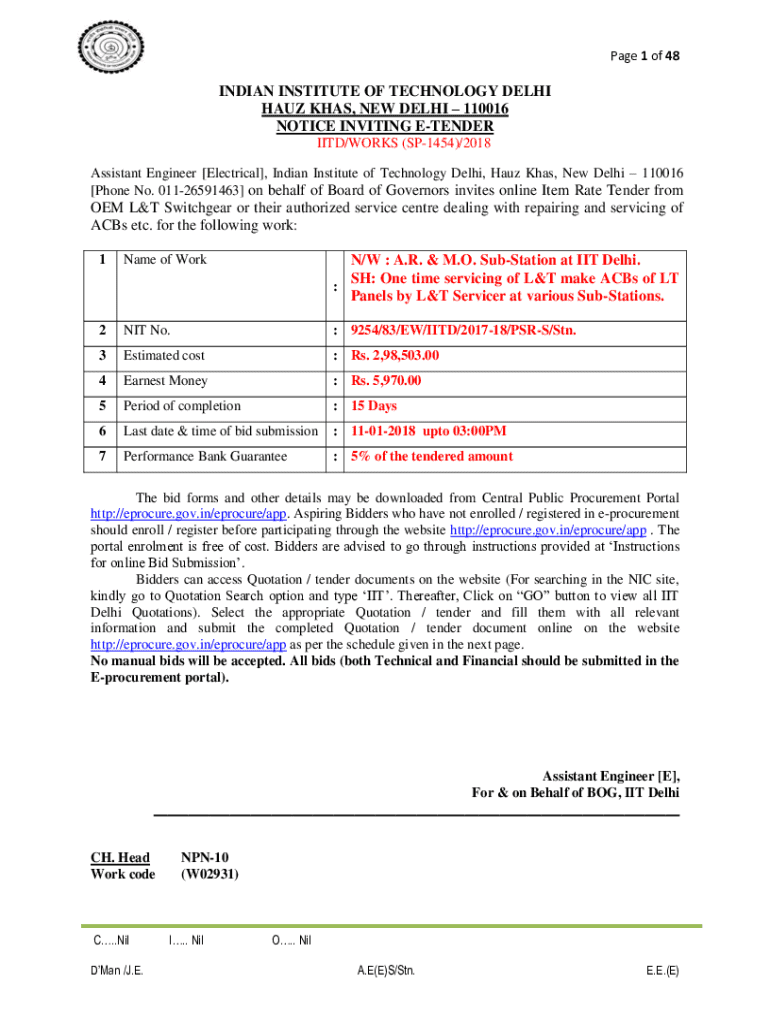 Get the free Notice Inviting E-tender