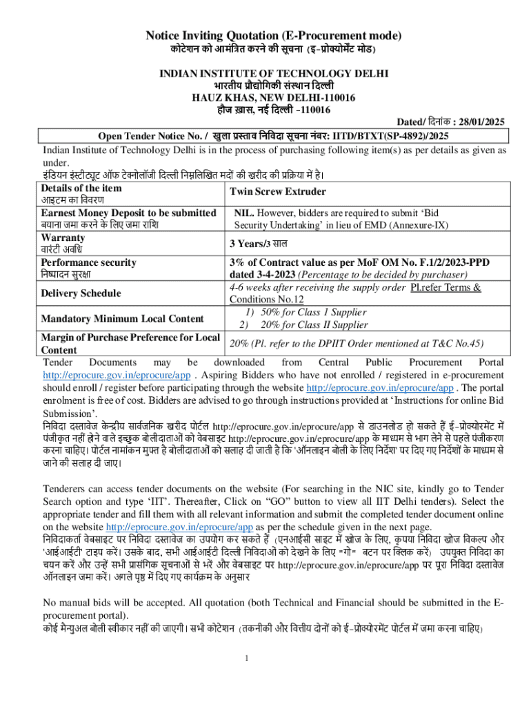 Get the free Notice Inviting Quotation (e-procurement Mode)