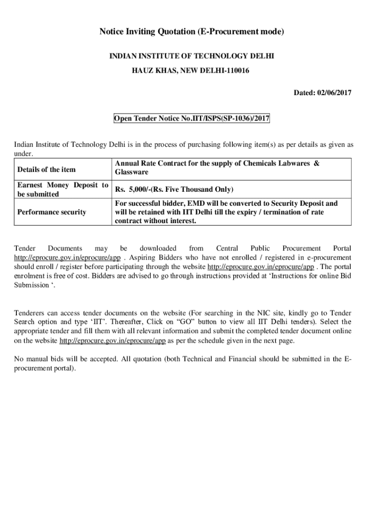 Get the free Notice Inviting Quotation (e-procurement Mode)